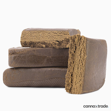 Ketama 25 hash shows a dense, traditionally pressed texture with medium softness and a rugged exterior