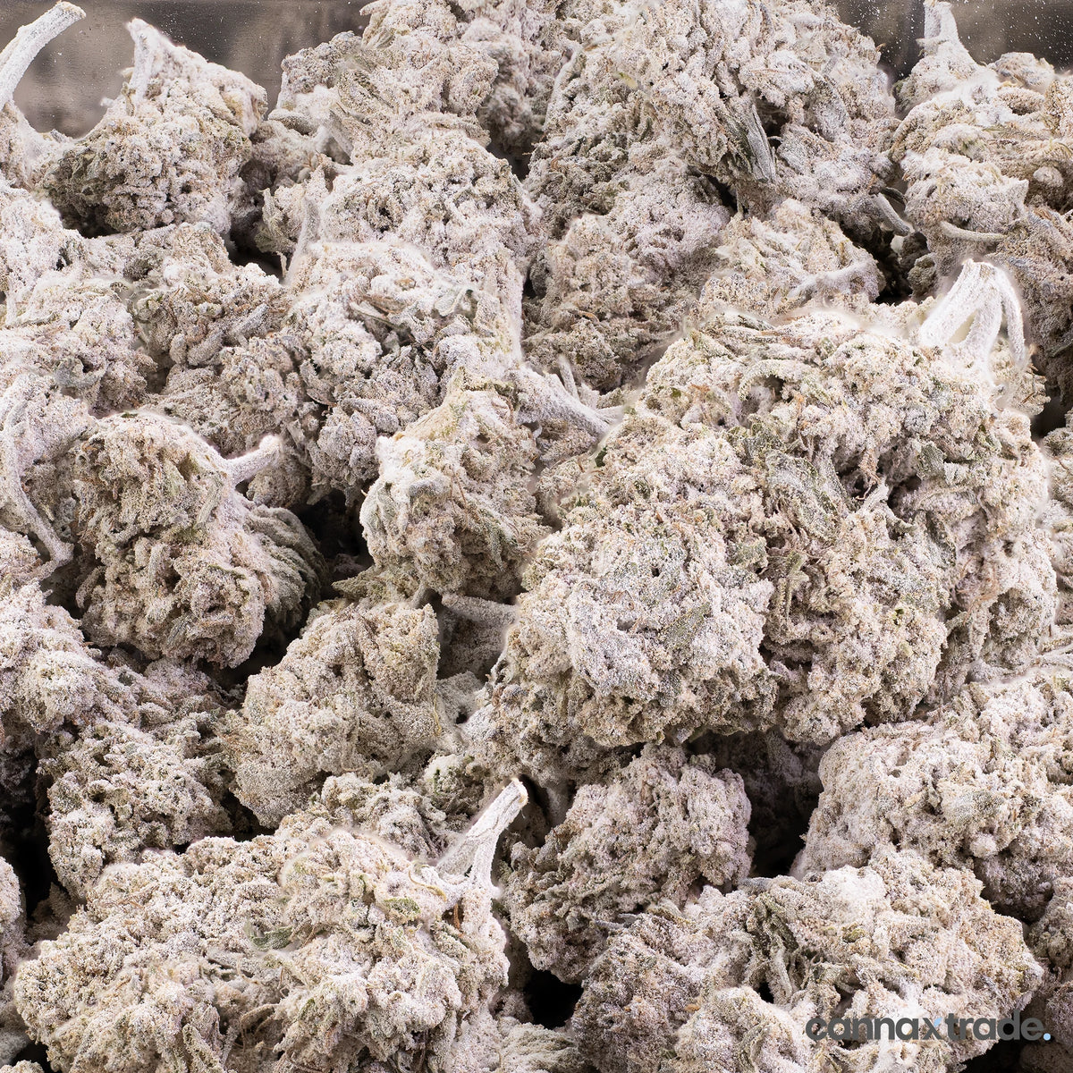 Lemon Cheese 23 Indoor is a premium indoor-cultivated hemp flower coated with THCA, giving it a frosty, white crystalline finish. The buds are compact and well-structured, displaying light green and purple hues beneath the thick THCA layer.